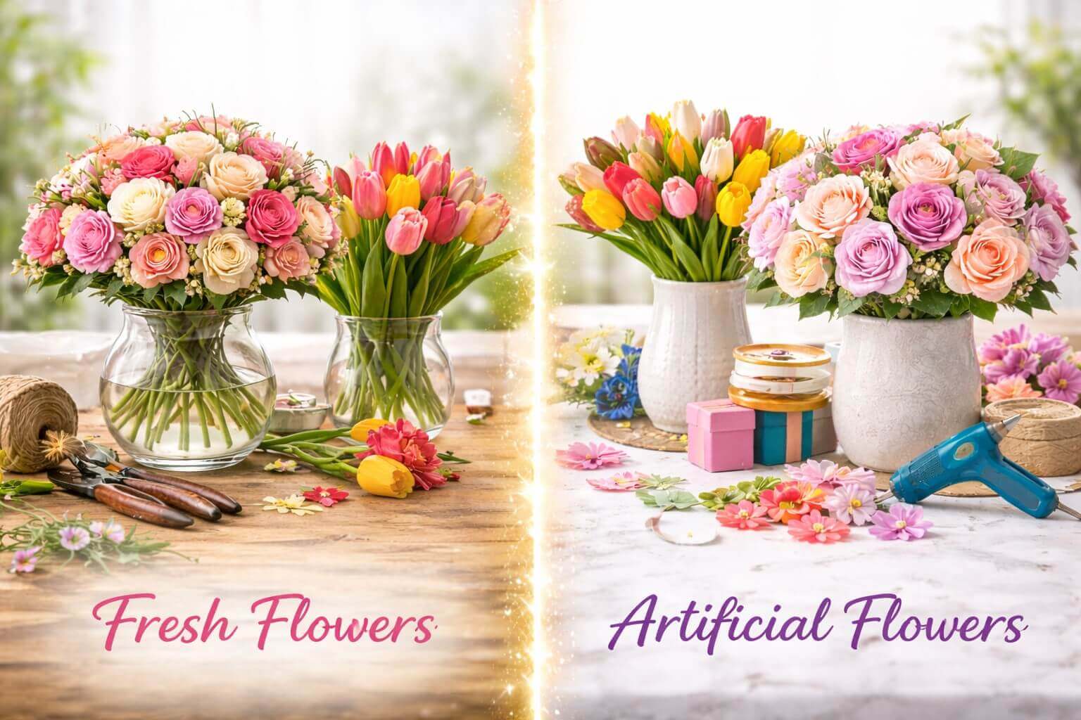 Everyone likes to have nice things in their home. Flowers are one of those things. They bring color to a room. However, you have to choose between two types. You can buy real ones or fake ones. This choice of fresh vs artificial flowers depends on many things. It depends on your budget. It also depends on how much work you want to do.